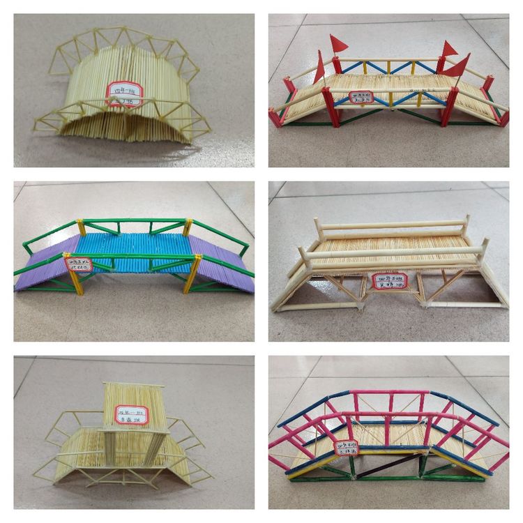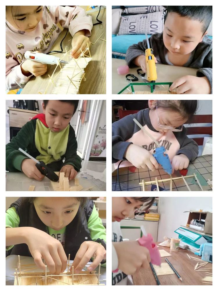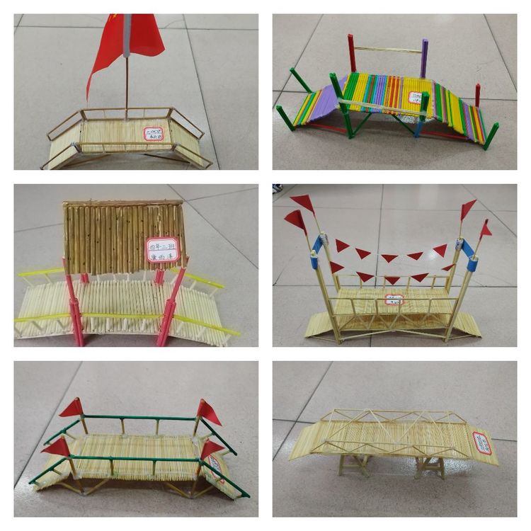 为打造牢固、美观、科学为一体的“牙签桥”,孩子们在一次次的尝试中不断完善制作过程,精心构思桥的结构,他们反复实践,不断地加固和完善作品,快看看他们的表现吧!