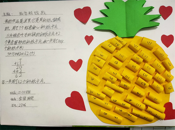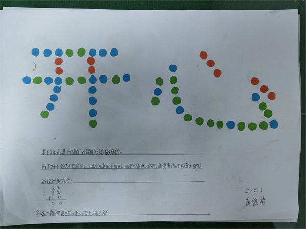为了提高二年级小朋友的动手操作能力和知识运用能力,近日,咸阳市高新一中小学部二年级数学组开展了第一次数学实践活动——数学粘贴画。
