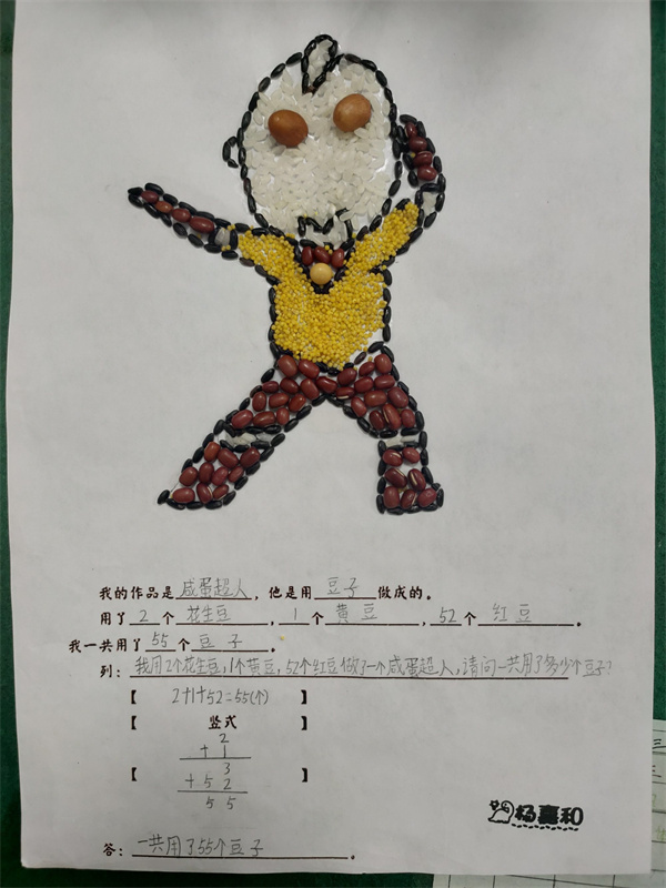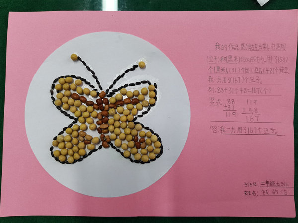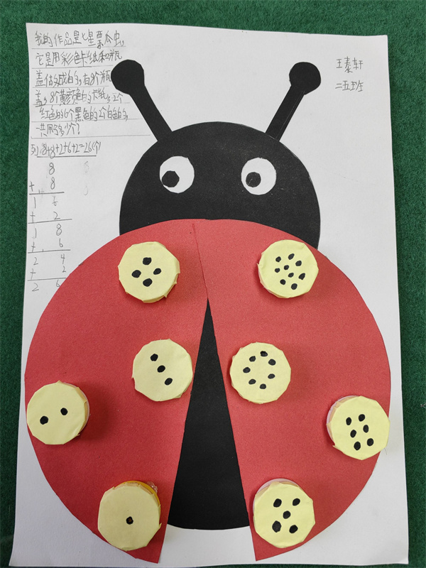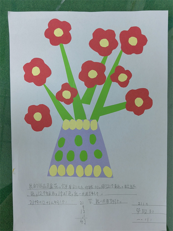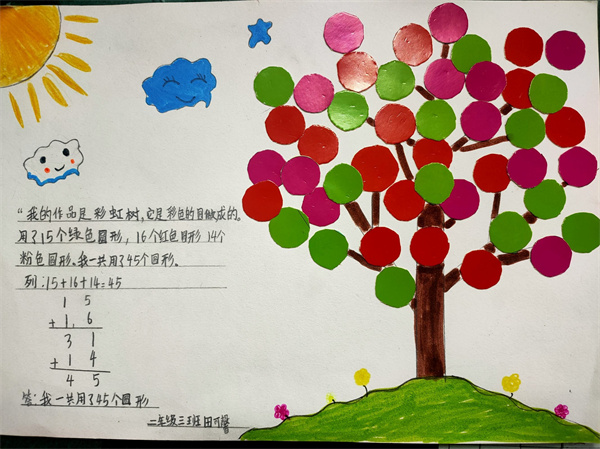 每幅作品中都留下了孩子们对生活的热爱和对数学的喜欢,孩子们通过粘一粘,数一数,算一算,不仅提高了自己动手能力,而且发现了数学的美,感受到了数学和生活的联系。