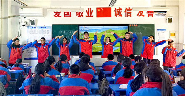在赵蓬勃老师的音乐课堂上,学生热情展示了《我的中国心》《东方之珠》《雪绒花》《献上洁白的哈达》《我的祖国》等所学歌曲,感知了旋律、节拍、节奏等音乐要素,体验音乐情绪。