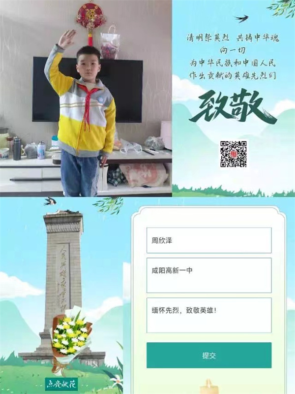 一年一清明,一岁一追思。为大力弘扬以爱国主义为核心的民族精神教育,引导小学生学习清明文化,弘扬革命精神,在清明假日期间,咸阳市高新一中小学部特开展2024年清明节主题活动。让我们铭记革命英雄先烈,向他们致敬!
