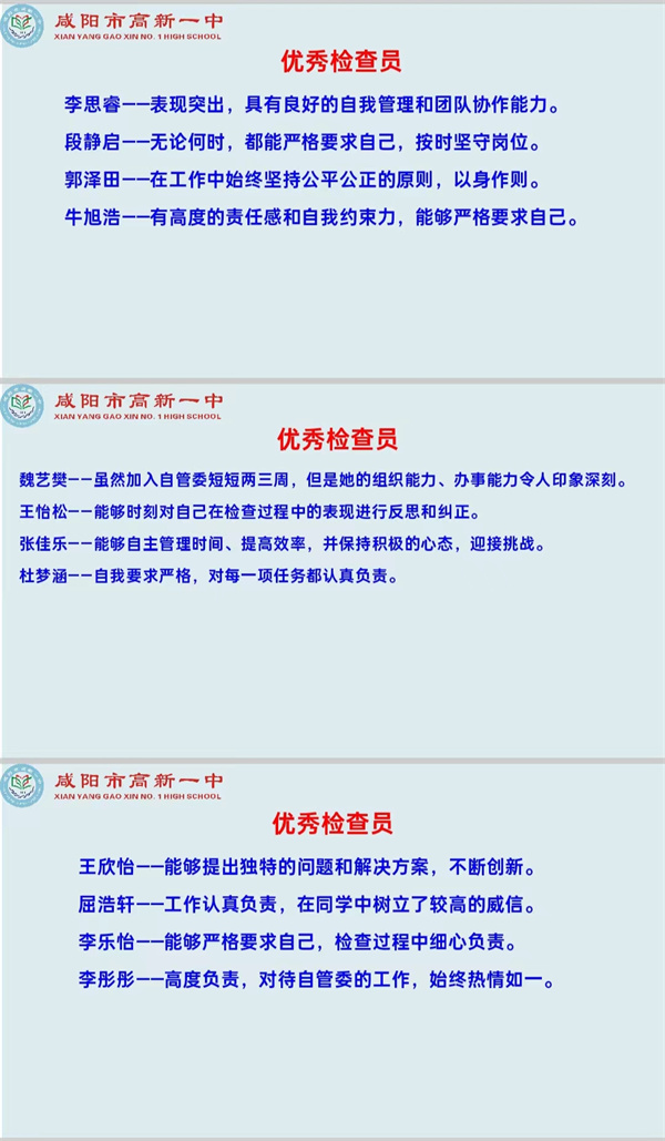 初中部德育主任罗刚锋对本学期自管委学生的表现给予了极大肯定,表示初中部学生自管委的优化,使得工作更实更有效,学生的组织能力和管理能力大大提高。