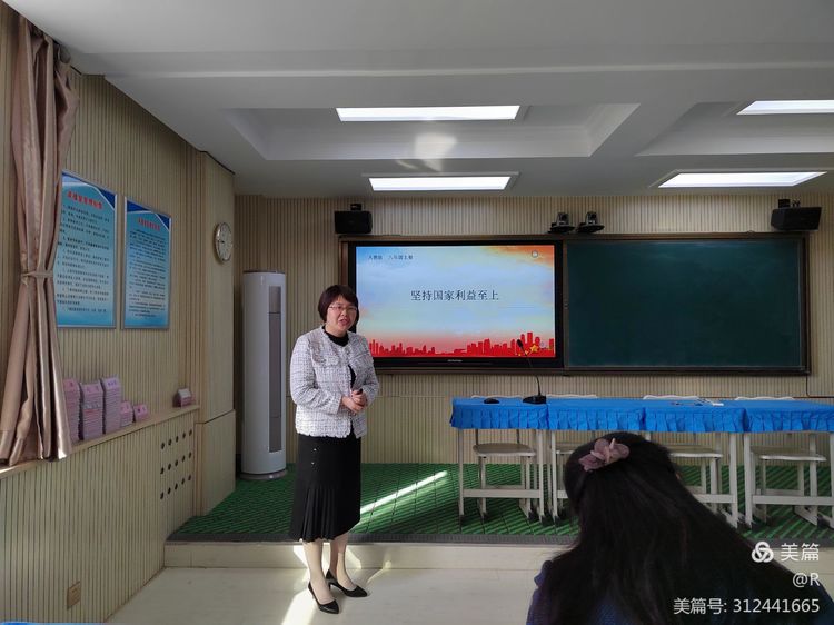 冯迎利老师的说课题目是《坚持国家利益至上》,她的说课课件制作精美,条理清晰分明,以情境导入层层深入,达成知识目标的实现。