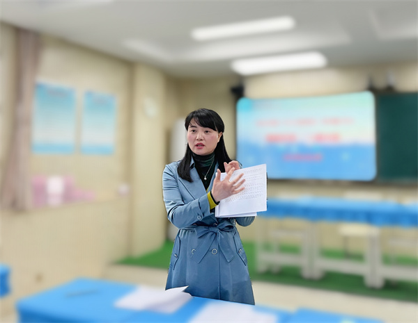 副校长杨都总结发言,她首先对初三教师们一贯的工作态度、敬业精神给予了充分肯定。同时提醒大家要认清形势,明确目标,少讲多练,狠抓落实,有条不紊地推进复习备考工作。