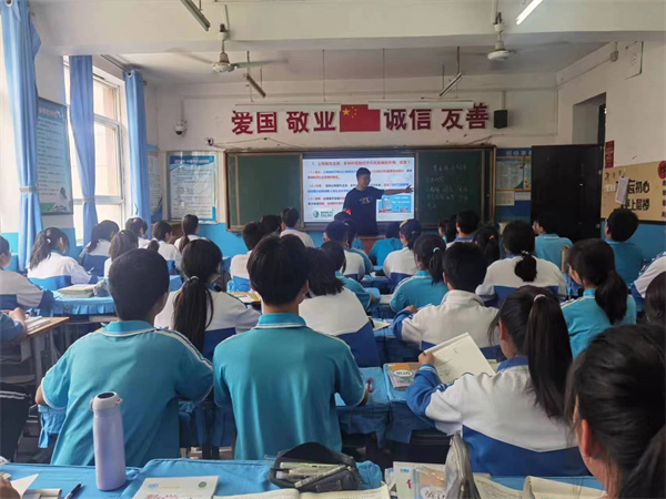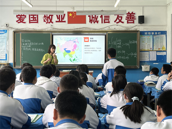 张丹老师——历史《明朝的对外关系》。她采用邮票导入,讲述郑和下西洋时,采用了材料与视频结合的方式,激情学生兴趣。并且以动图的形式,让学生清晰明了地看出郑和下西洋的路线以及重大影响。补充史料,让学生体会民族英雄戚继光的卓越军事才能及保家卫国的爱国情怀。有效渗透家国情感教育。