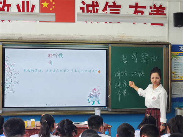 许翠老师执教七年级《青春舞曲》,充分发挥了自身扎实的基本功优势,带动学生们在轻松愉悦的课堂氛围中积极感受,大胆表现,激发了学生对音乐学习的兴趣!