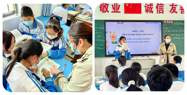 张洁老师重视学生听说能力的培养,注重语言学习的体验和实践,采用自主探索加小组合作交流的形式,使学生集思广益,讨论减压的方法并分享。