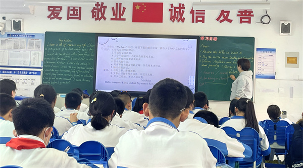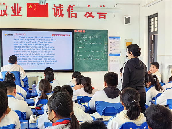 韩珺老师口语表达清晰流利,课堂内容丰富多样,从单词检测到文章写作,环节之间衔接紧密、过渡自然,锻炼了学生的听说读写综合能力。