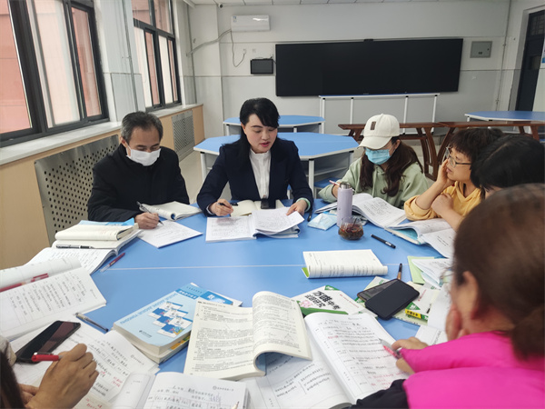 首先,曹阿妮组长对教学设计的各个步骤进行规范,带领组员学习教学设计案例。接着杨东老师根据《2022版义务教育数学课程标准》,从教学目标、教学重难点、教法、学法、教学活动、板书及反思等各个环节对照标准提出明确要求,并对教学设计中的问题进行重点强调。她提出我们要根据教材定重点,根据学情定难点。在教学反思部分要有针对性,具体到某个知识点,某一类学生。