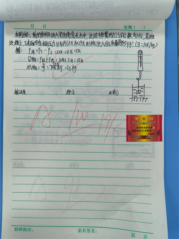 检查中,初中部的各科教师精批精改,认真细致,对错误之处能做出适当的批示。教师们对作业完成出色或有进步的学生采用鼓励性评价方式,运用小印章、小奖状等鼓励符号,别出心裁。