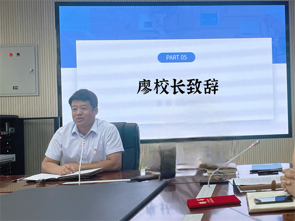 副校长廖荣作会议总结。希望青年教师坚定教师是天底下最光辉的职业;做思想的传播者和行为的引路人,学生的良师益友,有责任、有担当,在第一年站稳讲台,三年成为优秀,五年成为骨干,早日成为专业性教师。