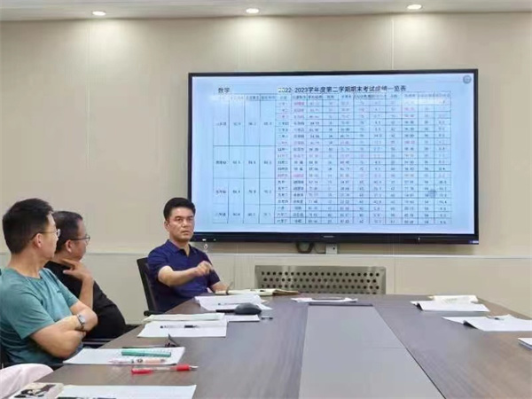 副校长程颖斌结合自己多年教学的经验,给老师们再次强调抓课堂、抓作业、抓习惯、抓辅导、抓学科育人的重要性,要求每位数学老师在平时教学中把学科育人铭记于心,教学常规落实于行,全力推进我校的高质量发展。