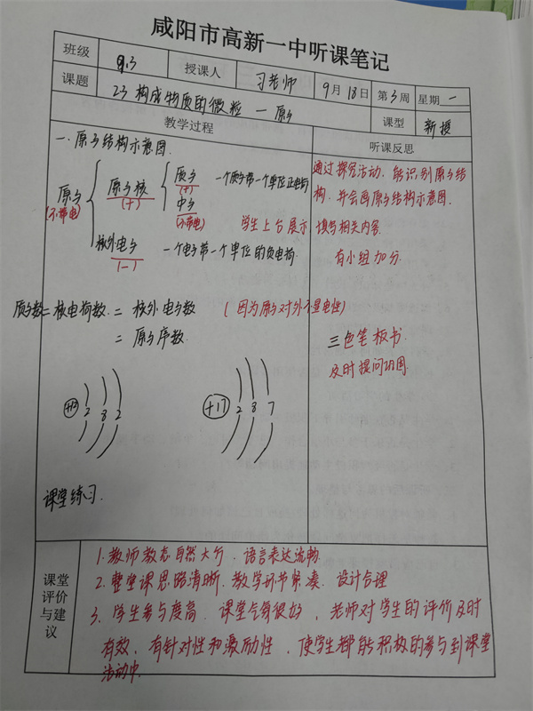 李玺老师:整体教态,讲课语速以及对课堂的把控都有很大进步,对知识点梳理比较详细,能利用模型让学生直观热机构造,同时熟练使用课件,这样结合起来有利于学生掌握课堂重难点!