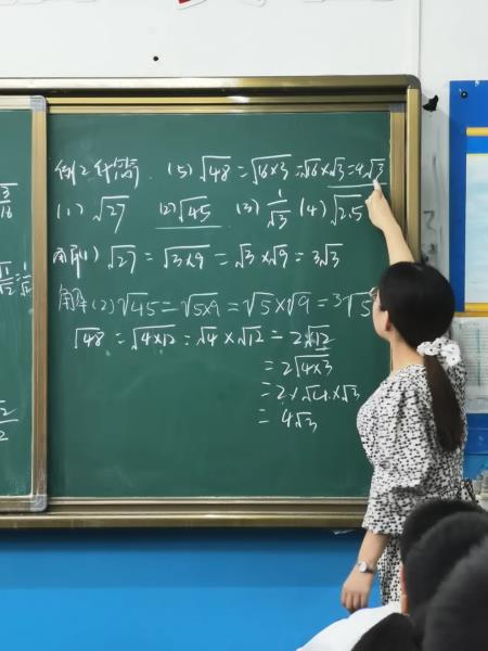 鲁老师首先创设情境,让学生从不同的式子中探寻规律,引入二次根式的概念。通过学生对二次根式性质的探索,逐步得出二次根式的性质,形成知识系统。并循序渐进的引导学生利用二次根式的性质将二次根式化为最简二次根式。