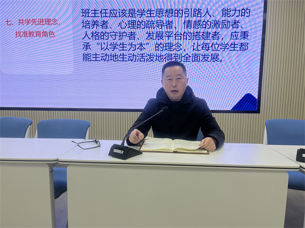 本次培训的主讲导师是高中部首席班主任培训师赵云苍老师。赵老师以“齐心协力,共建和谐班集体”为主题,从以“生涯导师制”模式为契机,形成教育团队;互通教育信息,支持配合科任老师的工作;班主任之间合作共赢;彼此欣赏,共同维护形象以及共学先进理念,找准教育角色等多个方面进行了分享。赵老师表示班主任应该是学生思想的引路人、能力的培养者、心理的疏导者、情感的激励者、人格的守护者、发展平台的搭建者、应秉承以“学生为本”的理念让每位学生都能主动地生动活波地得到全面发展。