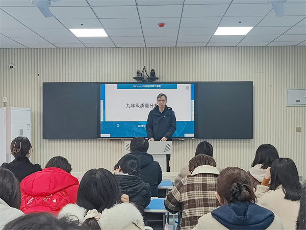 龚莉莉主任带领全体九年级老师分科目的对目前的教学质量现状进行了全方位的分析,对教育教学工作中存在的问题及其原因从教学管理,教师个人原因以及客观原因等因素进行了深刻分析,并在最后提出了今后努力的方向和改进措施。