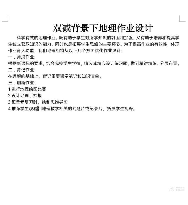 ①运用晚自习时间讲解作业,保证在教学时间内完成任务,不给学生留课后作业;②根据不同层次的学生布置相应的作业;③建立思维导图,建立知识点之间的联系;④布置相应的实践性作业,提高学生的实践能力;⑤布置相应的创新作业。
