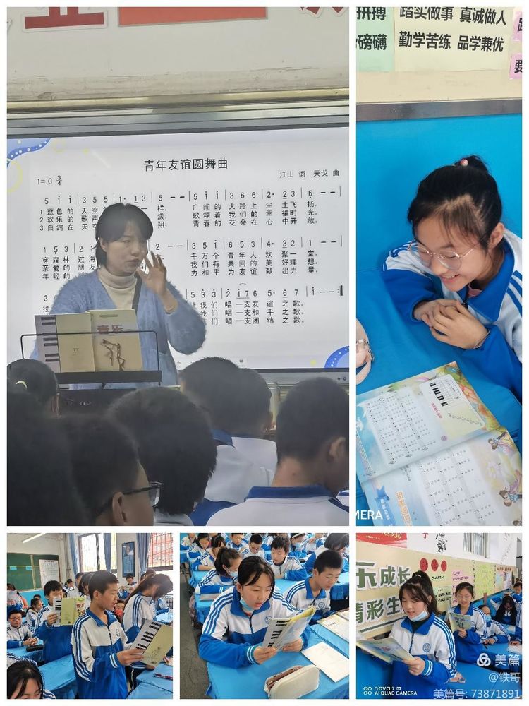 许翠翠老师:《青年友谊圆舞曲》欢快舒缓的旋律,扑面而来沁人心脾,少年惬意的脸庞,嘴角上扬。跟唱的投入、轮唱的专注。一个手势,一个眼神,抑扬有序,收放适度。让学生感受音乐的魅力,传递青春的友谊。