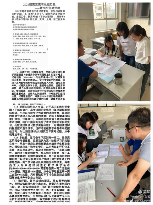每月的主题研讨在开学初已经列入清单中。九月份由教研组长纪占营主持研讨,主题是:2021届高考复习总结反思。回顾了上一年度高三复课的策略方法,也总结了教训和不足,同时分析了2021年的高考试题,为新高三提供了借鉴的地方;十月份由代高一双师班课的宋朝武老师主持研讨,主题是:高新一中教学思想理念解读。使大家对西安高新一中的教学理念得以了解,也为大家提供了参考和思考。