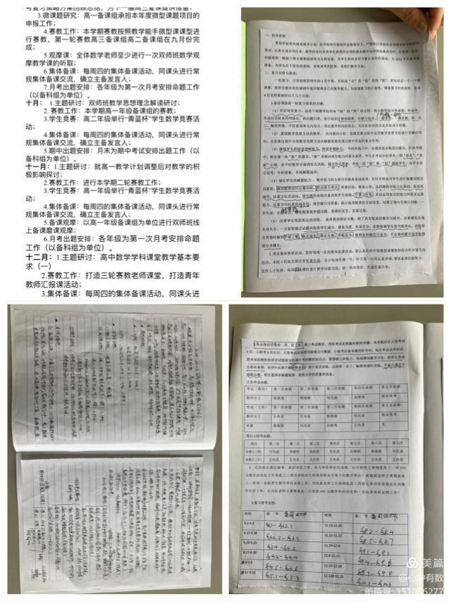 开学初,在学校及教导处计划指导下,教研组、备课组在数学同仁的共同努力下,群策群力制定了教研组和备课组计划,个人计划先后也得以呈现。以备课组为单位拟定了教学进度表,教研组、备课组制定了详细月工作任务清单,为本学期的教学工作及教研活动指明了方向。