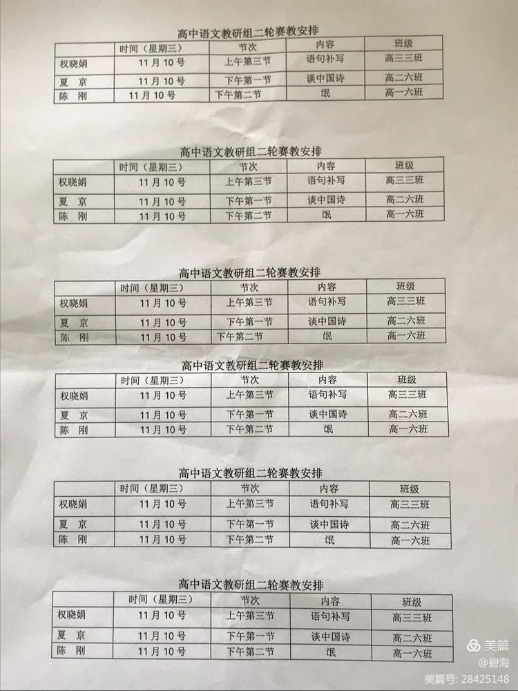 首先,教研组长苏通老师提前两天周密安排了二轮赛教暨评课活动。