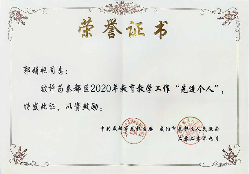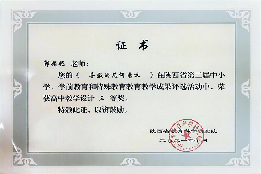 郭娟妮:中共党员,18年深耕高中数学教学,现任高中数学教研组长。2016年获得陕西省教学能手称号;2019年成立秦都区高中数学名师工作室;2019年、2020年连续被评为秦都区教育教学“先进个人” ,2021年被评为区级“优秀教师”,多次被评为校级“优秀教师”、“课改标兵”等。主持、参与省级课题两项、区级课题5项;多篇论文在陕西省教育科学研究院、陕西省教育学会、秦都区教学研究室发表;连续四年担任咸阳市教师资格考试面试考官;连续三年被聘为秦都区高中数学兼职教研员。