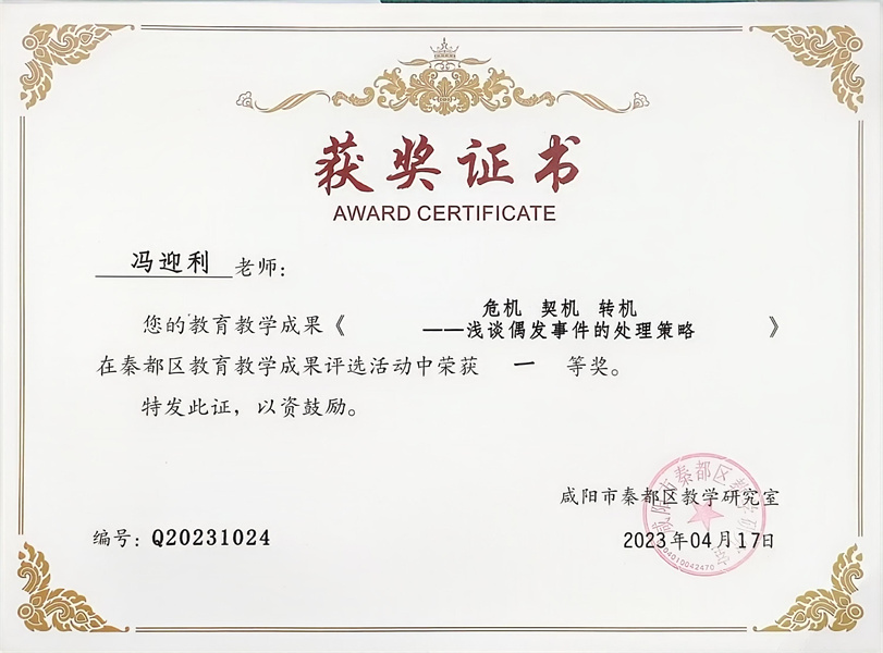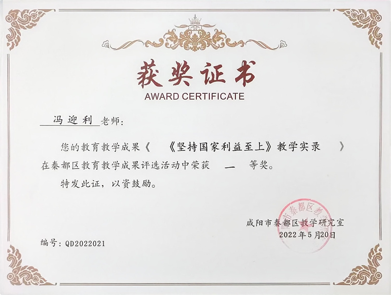 自2000年从事工作以来,连续多年担任九年级把关教师,教学经验丰富,中考成绩优异。2013年在咸阳市青年教师基本功大赛中荣获一等奖;2015年被评为陕西省教学能手;2016年在西北地区首届中小学课堂博览会上荣获一等奖; 2021年在陕西省首届创新课堂大赛中荣获优秀奖。2022年荣获陕西省思政课大练兵“思政课教学标兵”称号;数十篇教学论文和教学设计在省、市评比中获奖。多次主持区级和市级课题并获奖。编写的校本教材《道德与法治知识读本》和《这才是我们要追的星》深受学生欢迎,承担的各级各类示范课得到老师的一致好评。