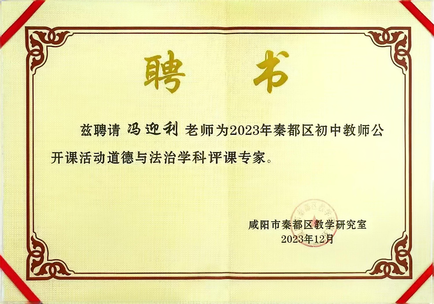 冯迎利,共产党员,咸阳市高新一中初中道德与法治老师,陕西省教学能手、陕西省思政课大练兵教学标兵、国家二级心理咨询师。