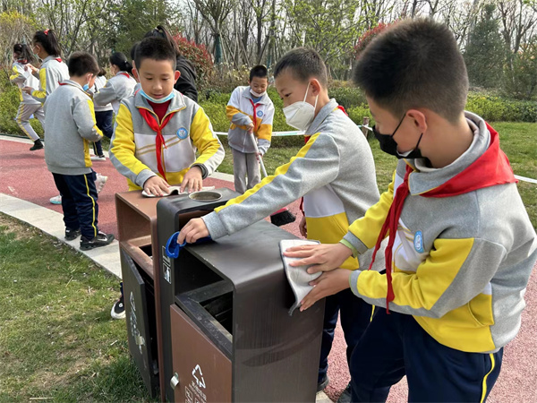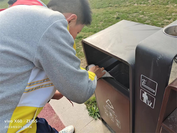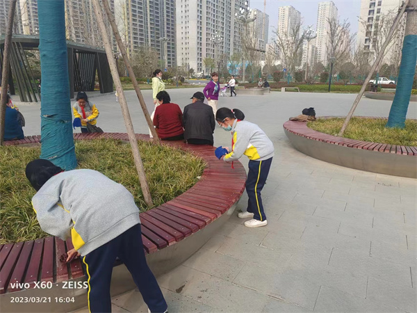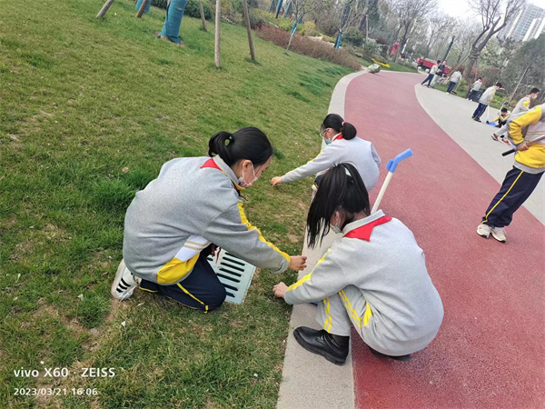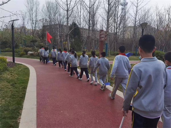 三月的风唤醒了路边的垂柳,为高新一中的校园涂上了属于春的色彩。3月21日,咸阳市高新一中四年级中队和六年级中队的队员们在少队辅导员冯娟老师的带领下,大手牵小手,踏着春光,走进“胭脂公园”和 “集乐广场”,用双手践行着红领巾的雷锋精神。