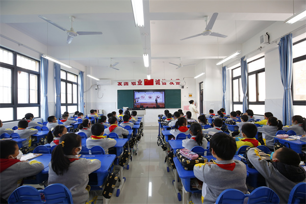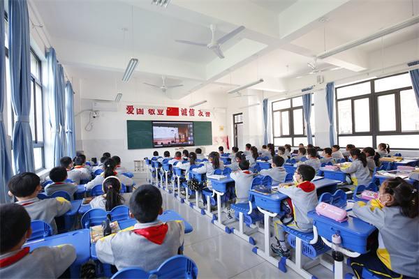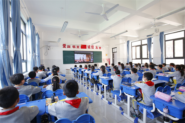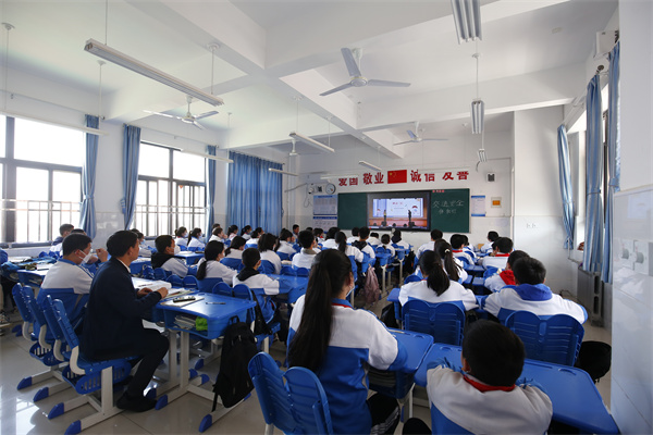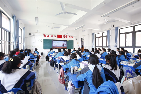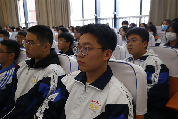 活动还设立了分会场,在小、初、高三个学部的各个教室内,同学们认真仔细聆听着交警的讲解。