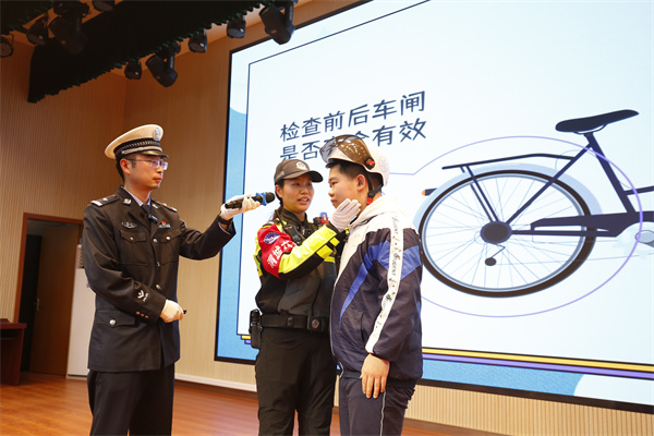 同时宣讲警官还与现场的学生进行了互动,让大家更直观得了解了交通安全的重要性。