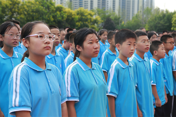全体师生齐唱校歌《共同梦想》。铿锵有力的歌声汇聚成一股强大的力量,撼动人心,催人奋进,这是对学校精神的传唱,更是对共同梦想的誓言。