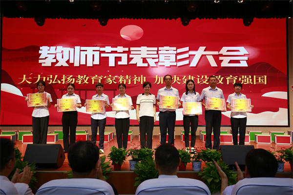 随后,副校长廖荣宣读了《2024年秦都区教育工作先进个人》和《咸阳市高新一中关于2024年教师节先进集体和先进个人》的表彰决定。