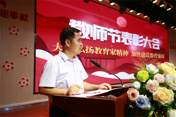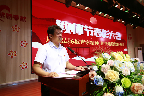 学校党总支书记、校长于建营的致辞更是振奋人心。他首先代表学校向辛勤耕耘在教育一线的广大教师表示了衷心的感谢和节日的祝福。他强调,在过去的一年里,全校师生在各级领导和社会各界的关心支持下,团结一心,锐意进取,学校的教学质量取得了显著成绩,特色发展、教育创新、教科研成果等方面也获得了省教育厅的高度认可。这些成绩是全体教师不懈奋斗、追求卓越的结果,充分展现了新时代高新教师实干奋斗的精神和高新风采。