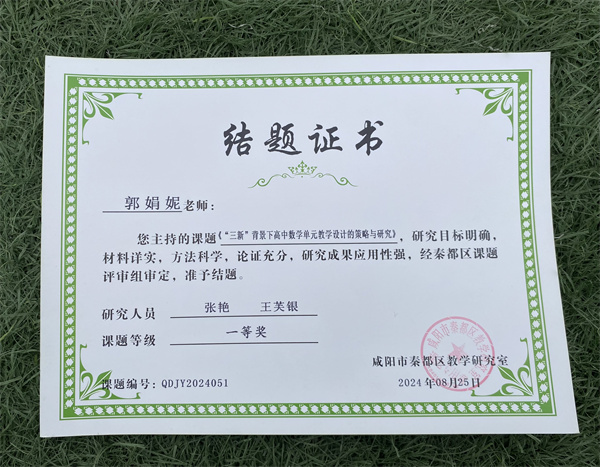 秦都区2024年结题获奖情况