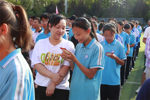 家长送寄语的环节温馨而感人。家长们将精心准备的寄语卡片送给自己的孩子。卡片上写满了家长们的爱与祝福。