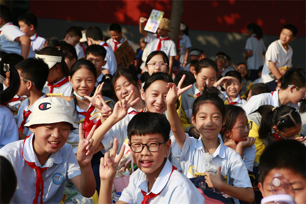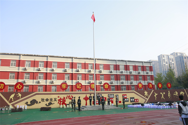 开幕式在庄严的国歌声中拉开帷幕,五星红旗冉冉升起,全体师生共唱国歌,行注目礼、敬少先队礼。