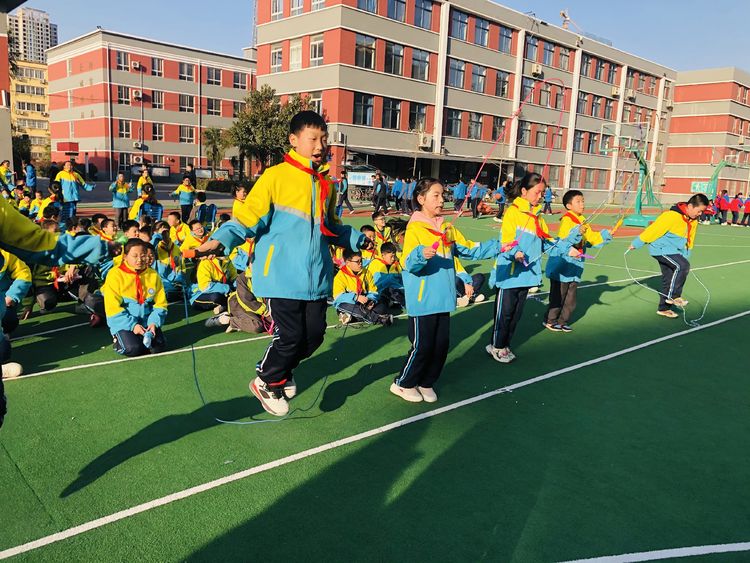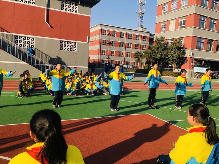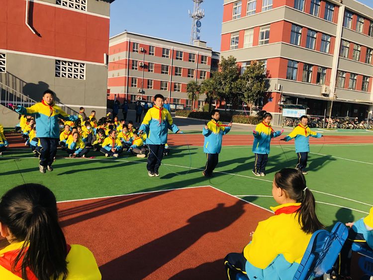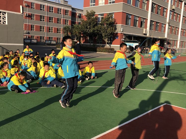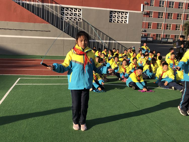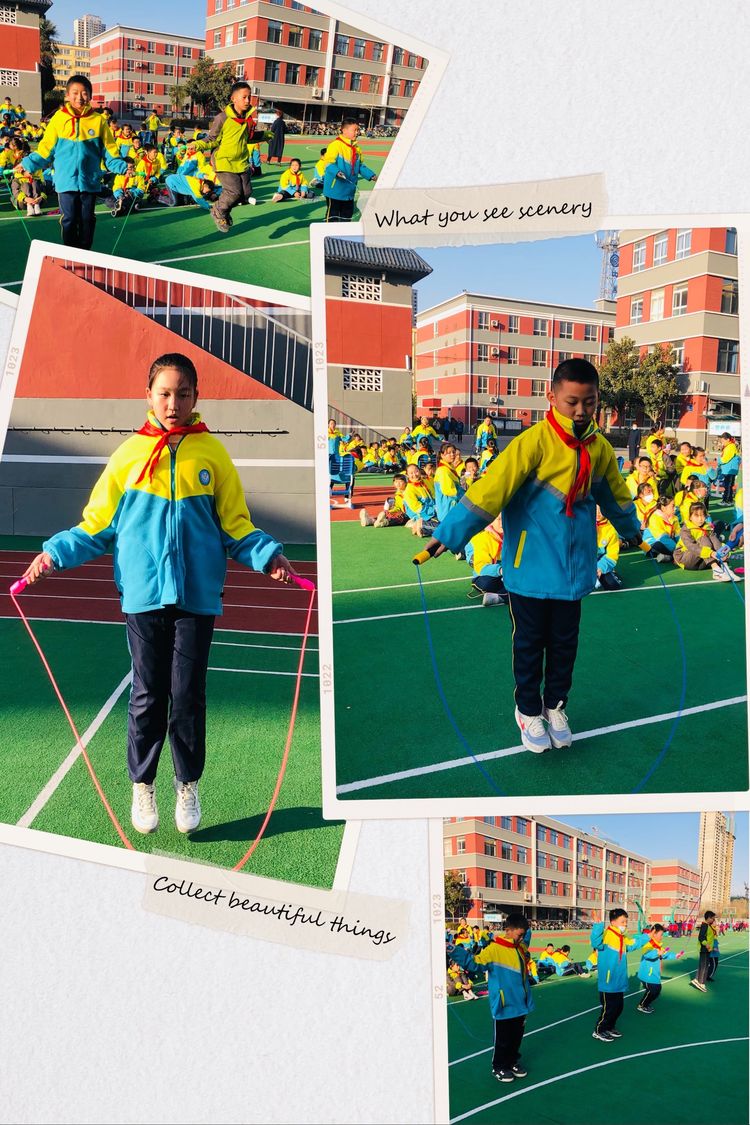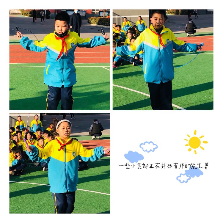 操场加油声此起彼伏,轻盈的绳子在孩子们的脚下,有节奏地跳动着。