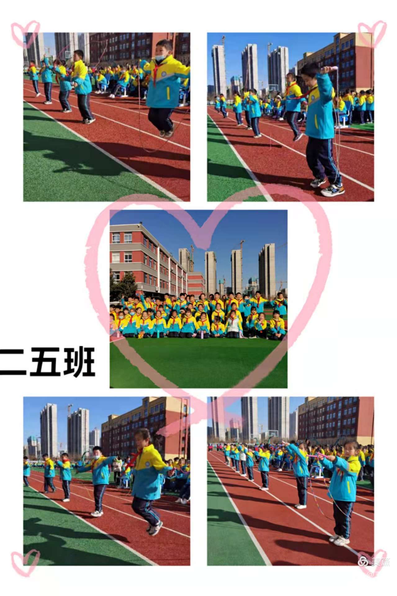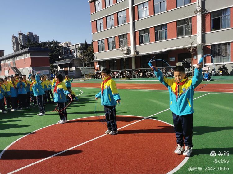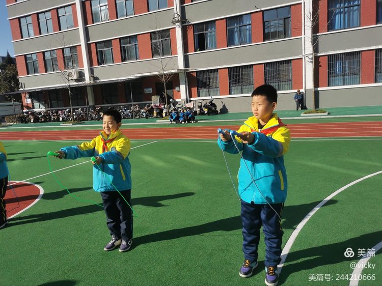瞧,翻飞的跳绳在孩子们的手中翩翩起舞,细细的一根绳,不仅连接了你我,更将班级里的每一个同学连接在了一起,挥舞的长绳,悦动的精灵,每个人心中都秉持着为集体争光添彩的信念,此处应该有掌声。???