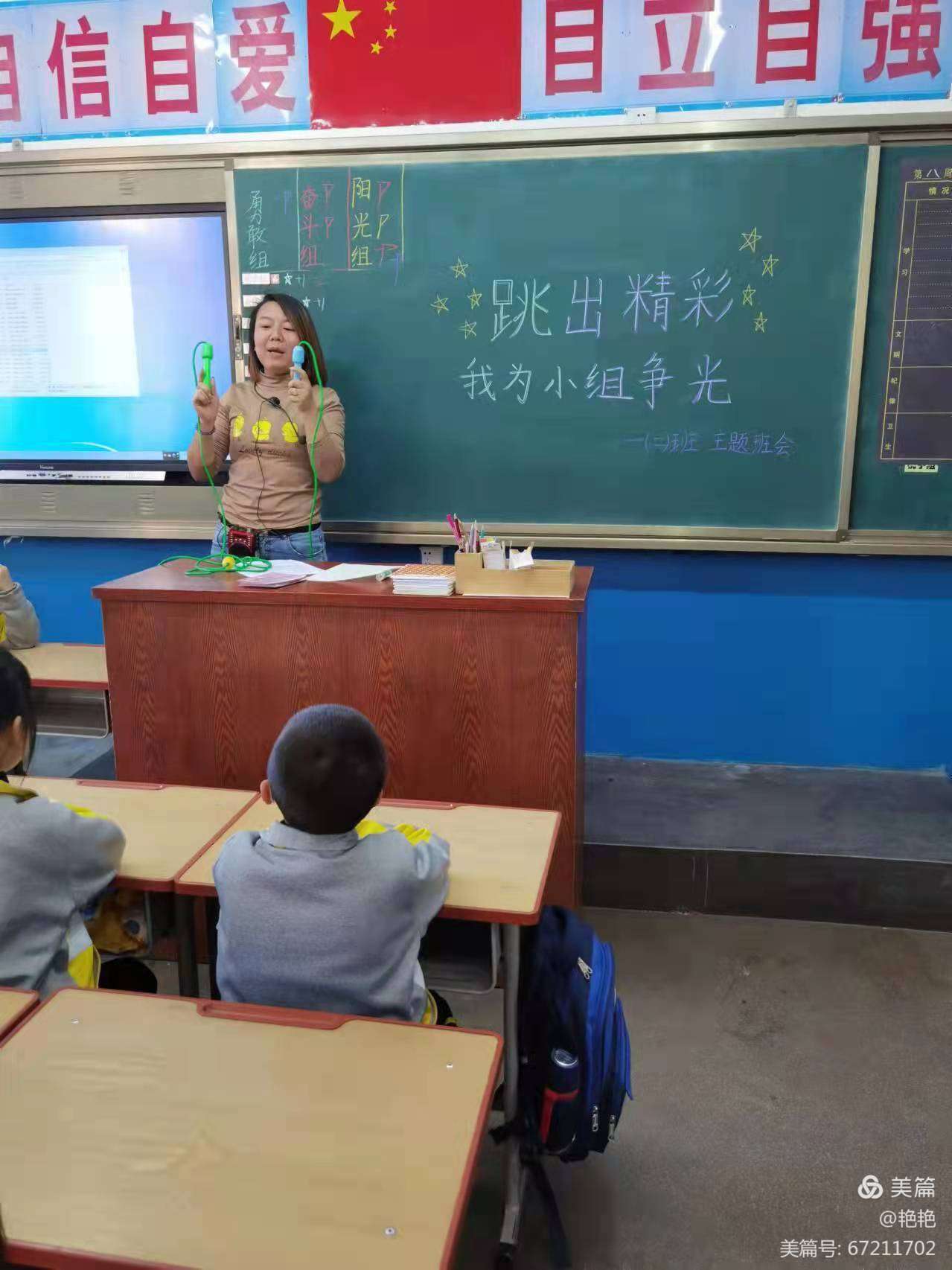 开展跳绳比赛前,各班班主任为了调动孩子们的积极性,特意开展了“跳出精彩,我为小组争光”的主题班会,班会课上,她们利用教学跳绳的视频给孩子们讲解了跳绳的基本技巧和注意事项,还给孩子们讲解了跳绳大赛的重要性,要求孩子们刻苦练习,鼓励孩子们积极参与。