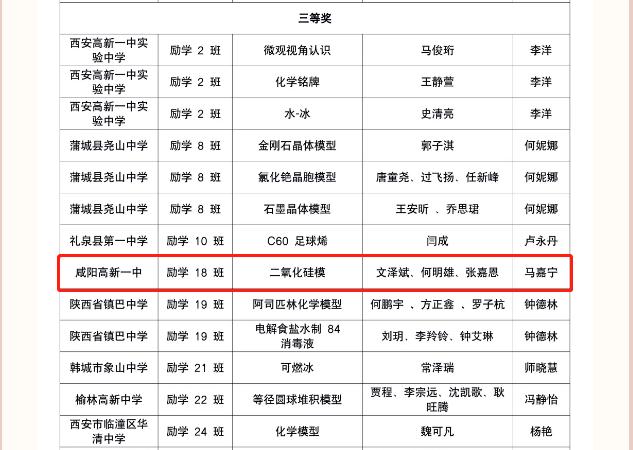 最终,我校的3个化学模型创意作品在众多作品中脱颖而出,分别获得一、二、三等奖。