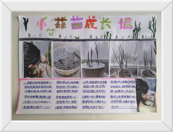 我们的孩子连续细致了一段时间后,见证了豆芽和蒜苗的成长,了解了红薯、蘑菇、青菜、香菜等的种植,收获满满!