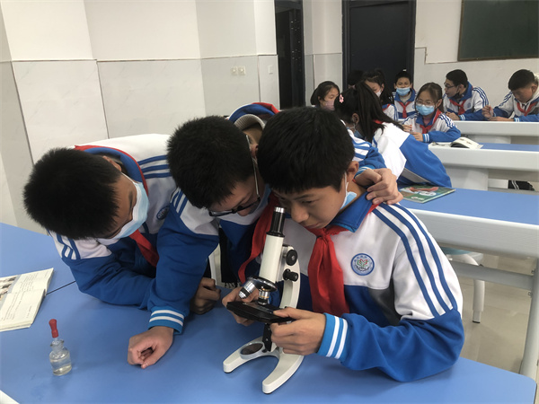 生物是一门集实验性、实践性及科学性于一身的自然科学。近期,咸阳市高新一中初中部生物备课组设计了“显微镜下的神奇世界”的学生活动。旨在激发学生的学习兴趣,调动学生学习生物学知识的积极性,进一步培养学生生物学操作技能和科学的实验方法,提高学生学生分析问题和解决问题的能力,以及培养学生团结合作、互相帮助的团队精神。