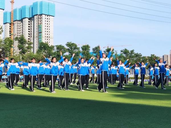 为了进一步丰富校园文化生活,增强学生身体素质,培养学生竞争、协作精神和集体荣誉感,5月18日,咸阳市高新一中举行了第二届广播操比赛。
