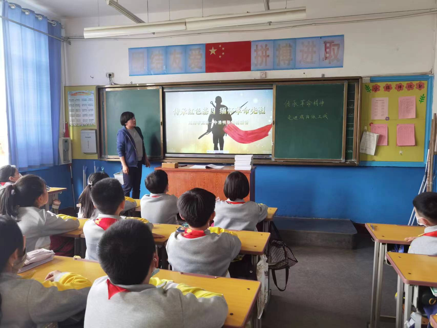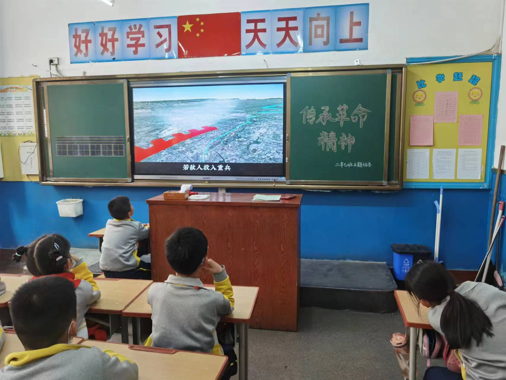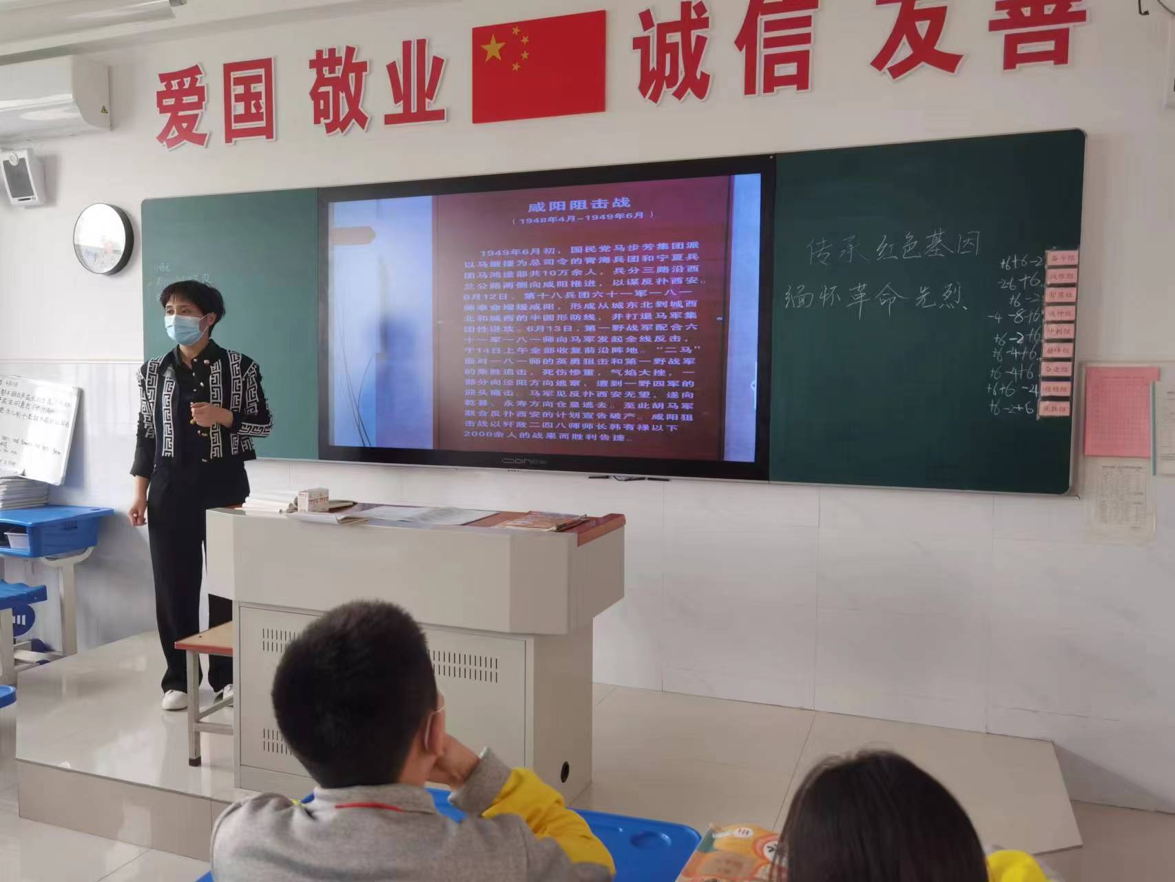 本次主题教育活动通过主题班会的形式开展,老师们带着孩子们回顾“清明革命先烈祭扫“活动视频,并围绕《咸阳阻击战》这一重大革命事件,通过讲解、观看电影短片、红领巾讲解等方式,让孩子了解身边的英雄事迹。