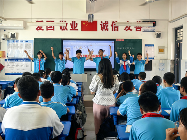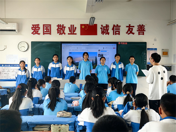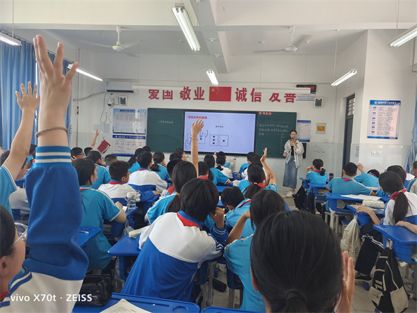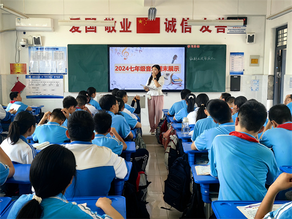 在赵蓬勃老师的音乐课堂上,学生以小组为主体、热情展示了《少年中国说》《我和你》《勇往直前》等所学歌曲,感知了不同乐器、旋律的美妙,体验了音乐情绪。