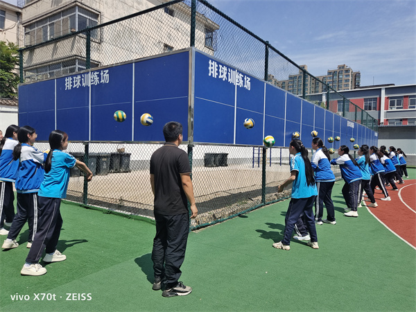 代好运老师本学期着重训练学生排球技能,先通过开合跳、拉伸等活动指导学生热身,接着进行垫球、抛球等动作练习,最后进行了笔试检测所学内容,使学生做到学有所用、强身健体。