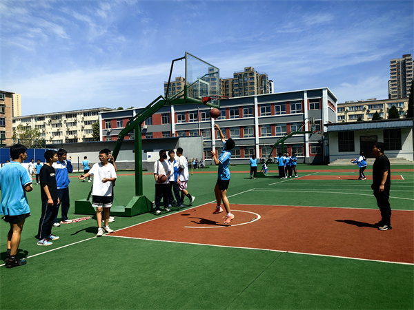 田楼老师本学期着重训练了学生的篮球、排球与足球技能。本节课开始,先带领学生做好热身,然后以小组形式进行展示,既达到了强身健体的目的,也彰显了体育风采。
