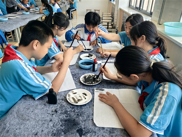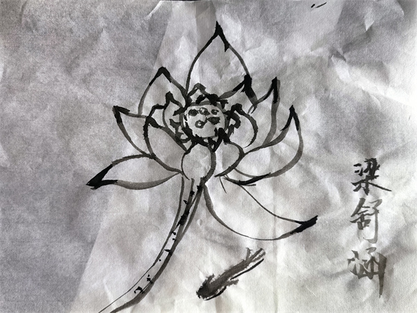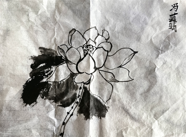 王云老师本节课讲授的是荷花作画技巧。先带领学生欣赏、感悟荷花之美,接着通过复习水墨画作画技巧并练习,使学生最终呈现出一幅幅逼真生动荷花图,激发学生对传统文化的热爱。