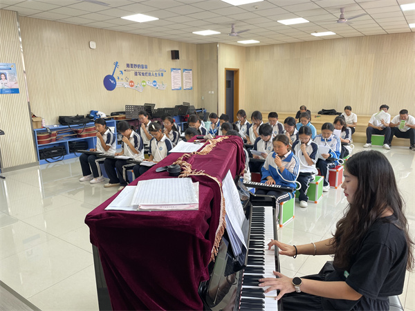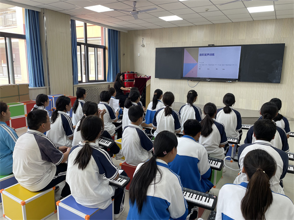 指尖旋律社团展示课精彩绝伦。同学们手持口吹琴,吹出悠扬旋律。社团成员们共同演奏了《欢乐颂》《上春山》等曲目,或欢快活泼,或婉转悠扬,让现场的气氛瞬间达到了高潮。在指导教师的钢琴伴奏下,同学们配合默契,演奏整齐划一,充分体现了团队的协作精神。同学们用小小的乐器奏出多彩乐章,充分感受到口风琴的独特魅力,沉浸在美妙的音乐世界中,也为校园增添一抹动人的音乐色彩。